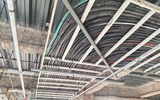 幹線ケーブルの敷設は、建物の受変電設備から各階の分電盤や動力盤へ電力を供給するための重要な電気工事です。 弊社ではパワーボールやウィンチ、ケーブルコロといった延線用工具を自社で複数台所有しているので、人力では難しい長距離の配線も可能です。